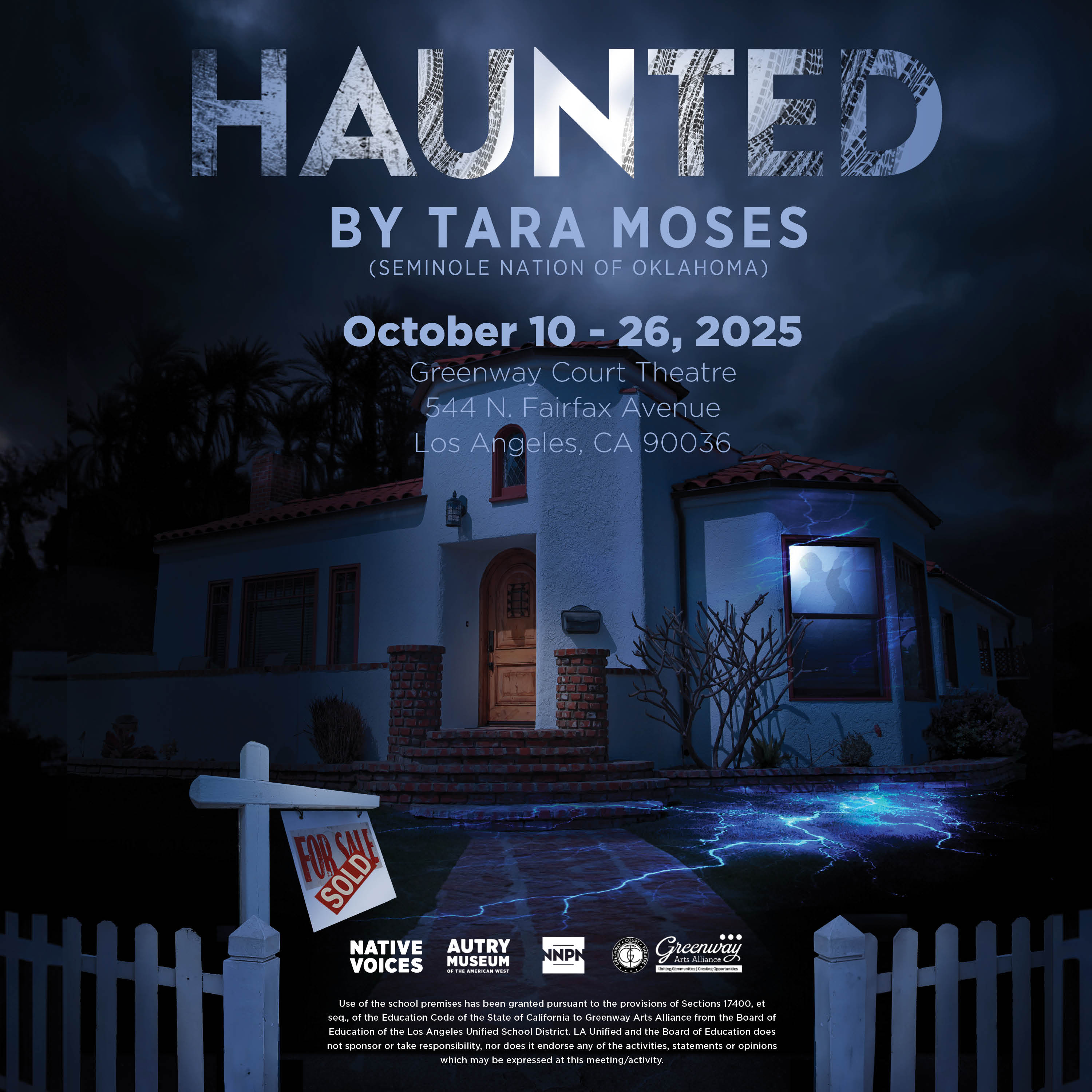 Haunted is produced at Native Voices as part of a National New Play Network Rolling World Premiere. Other Partner Theaters are Cleveland Public Theatre (Cleveland, OH) and Company One Theatre (Boston, MA). For more information, please visit nnpn.org